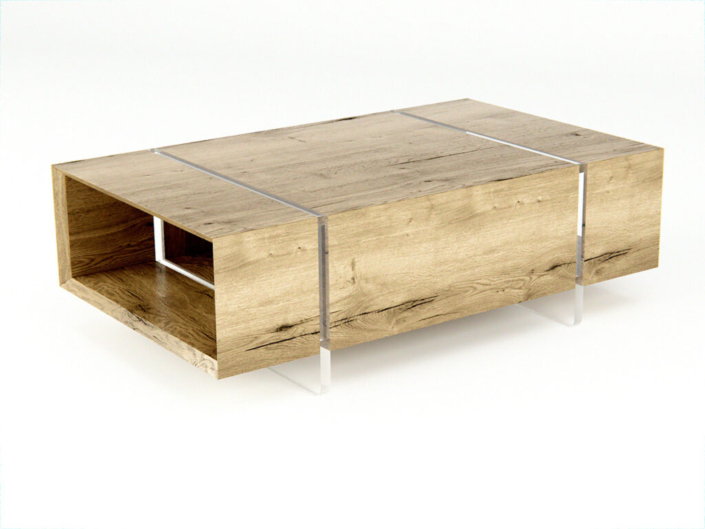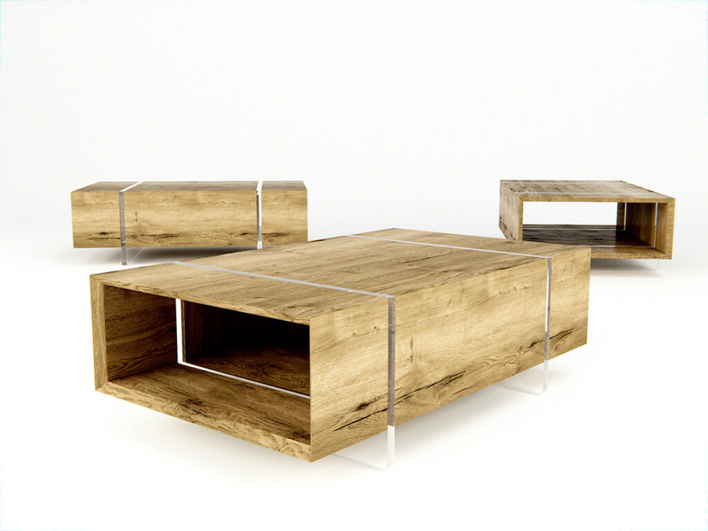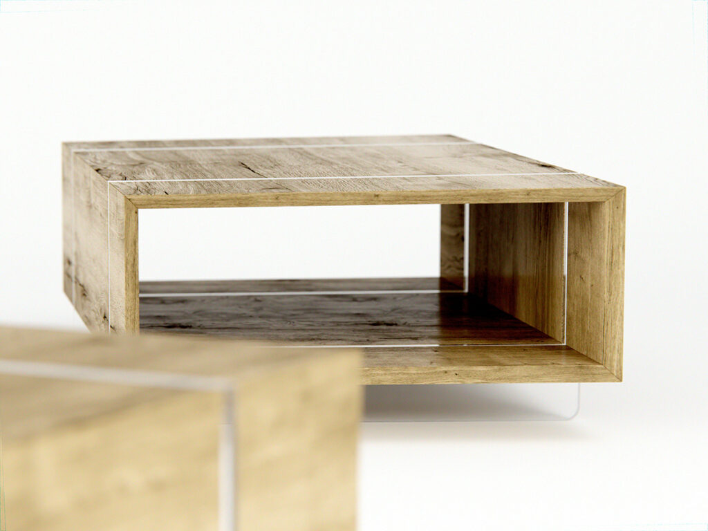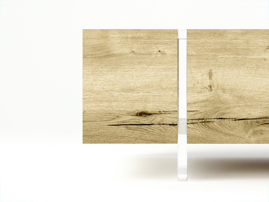 Ces bandes une fois symétrisées donnent le graphisme global du mobilier, le bois représentant la partie visible de l’élément, le plexiglass quant à lui symbolise le « vide » dans la matière.