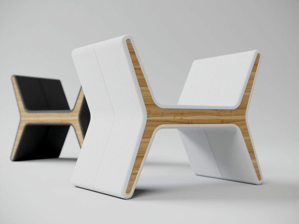 Réinterprétation moderne du siège curule romain, sa symétrie et son graphisme ont été inspirés de certains éléments des colonnes du sculpteur Constantin Brâncuși.